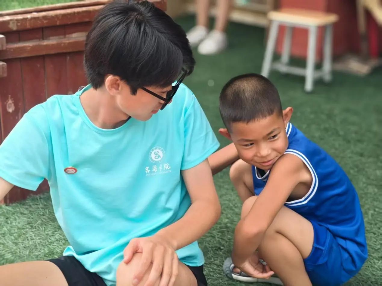 放学时光,志愿队与小朋友们在操场、草坪开启“友谊模式”。聊天、做游戏,从校园趣事谈到生活小美好,志愿队同学以真诚陪伴,成为孩子信赖的大朋友,让校园回荡欢声笑语。