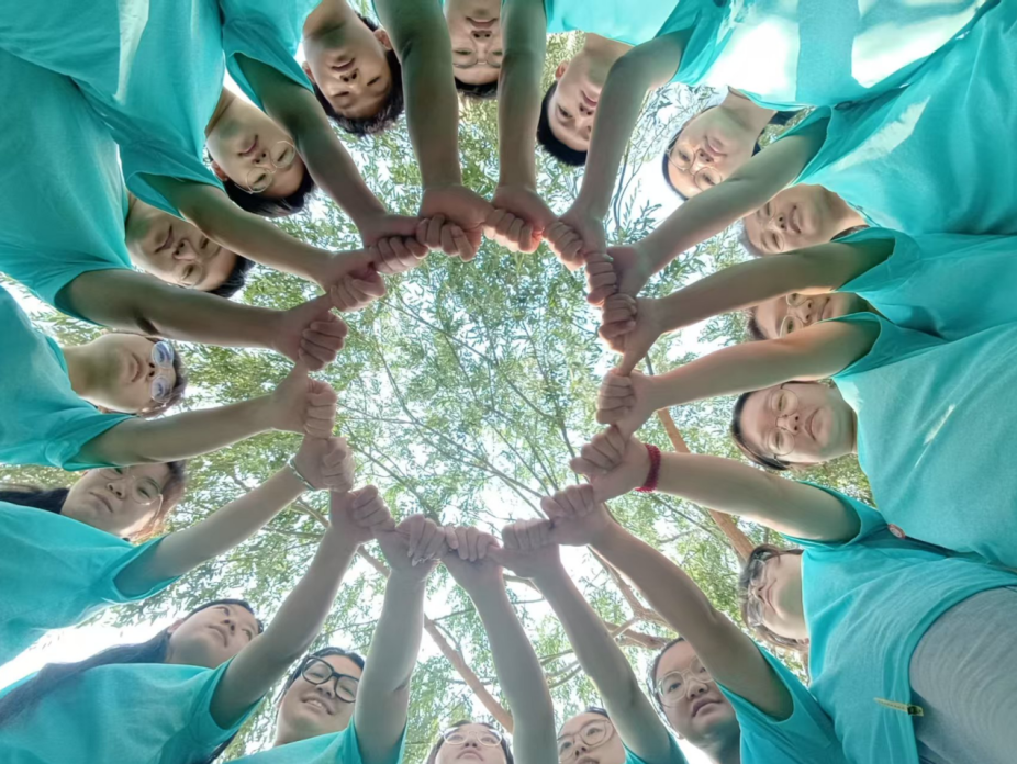 而最触动人心的,是“手相连,心相聚”的画面。众人自发围成圈,手拉手,连成一个圆满的环。蓝天绿树作背景,这一幕,像一幅生动的青春团结画,将团队的友爱与凝聚,诠释得淋漓尽致。从拍摄策划时的头脑风暴,到现场实施的默契配合,大家全程积极投入,清晨的阳光里,欢声笑语不断,让拍摄满是温暖烟火气。这早已不是简单的照片定格,而是助学实践途中,团结精神具象化的生动注脚。