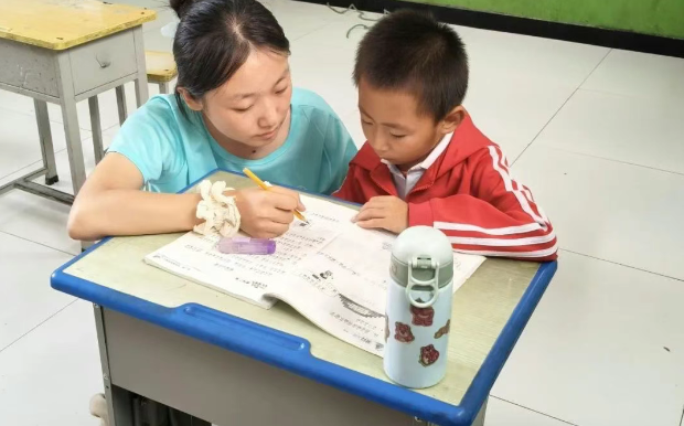 午后,作业辅导环节有序进行。志愿者们分组坐到孩子们身边,耐心解答数学难题、指导作文构思。针对学习困难的学生,他们采用“画图解题”“故事记忆法”等趣味方式,让知识变得生动易懂。同时,志愿者还为孩子们普及夏季防暑知识,叮嘱大家多喝水、少贪凉。