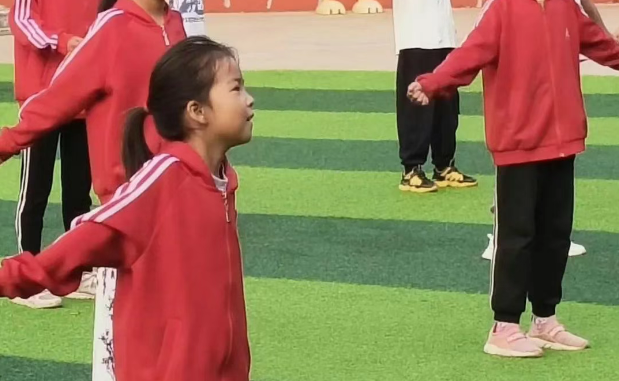 上午的体育课上,操场上活力四射。志愿者们设计了“运球接力赛”“跳绳大比拼”等趣味项目,带领孩子们在奔跑中释放天性。“加油!最后一步跨过去!”在志愿者的鼓励下,原本内向的小女孩小萱成功完成障碍跑,脸上洋溢着自豪的笑容。通过互动游戏,孩子们不仅增强了体质,更学会了勇敢与坚持。