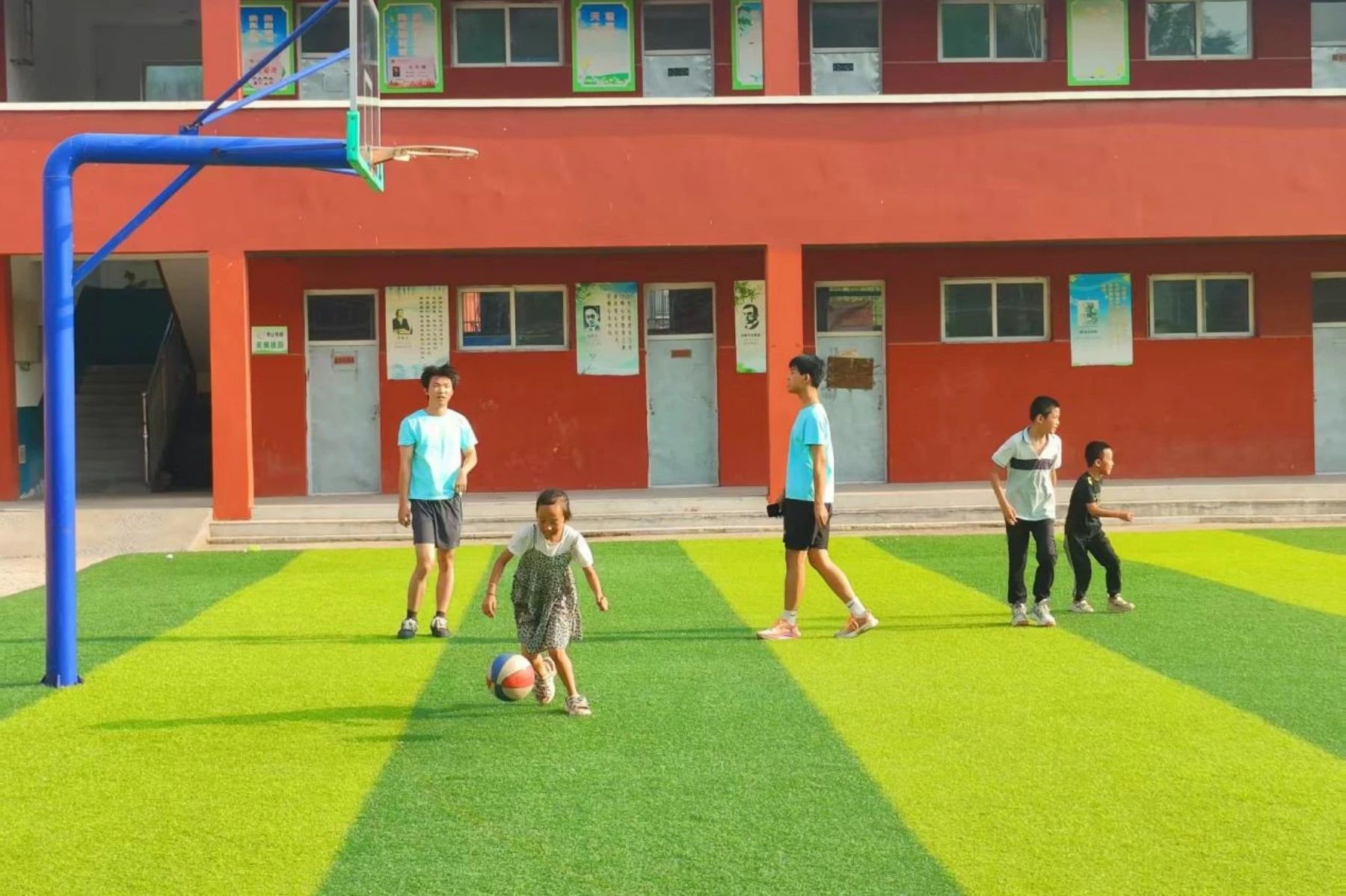 上午的体育课,在学校的操场上,孩子们尽情地参与体育活动。绿茵场上,他们追逐着篮球,肆意奔跑、欢笑,释放着青春活力。志愿者们也积极参与其中,鼓励孩子们勇于挑战自我,培养团队合作精神,让留守儿童们在体育锻炼中增强体质、收获快乐。