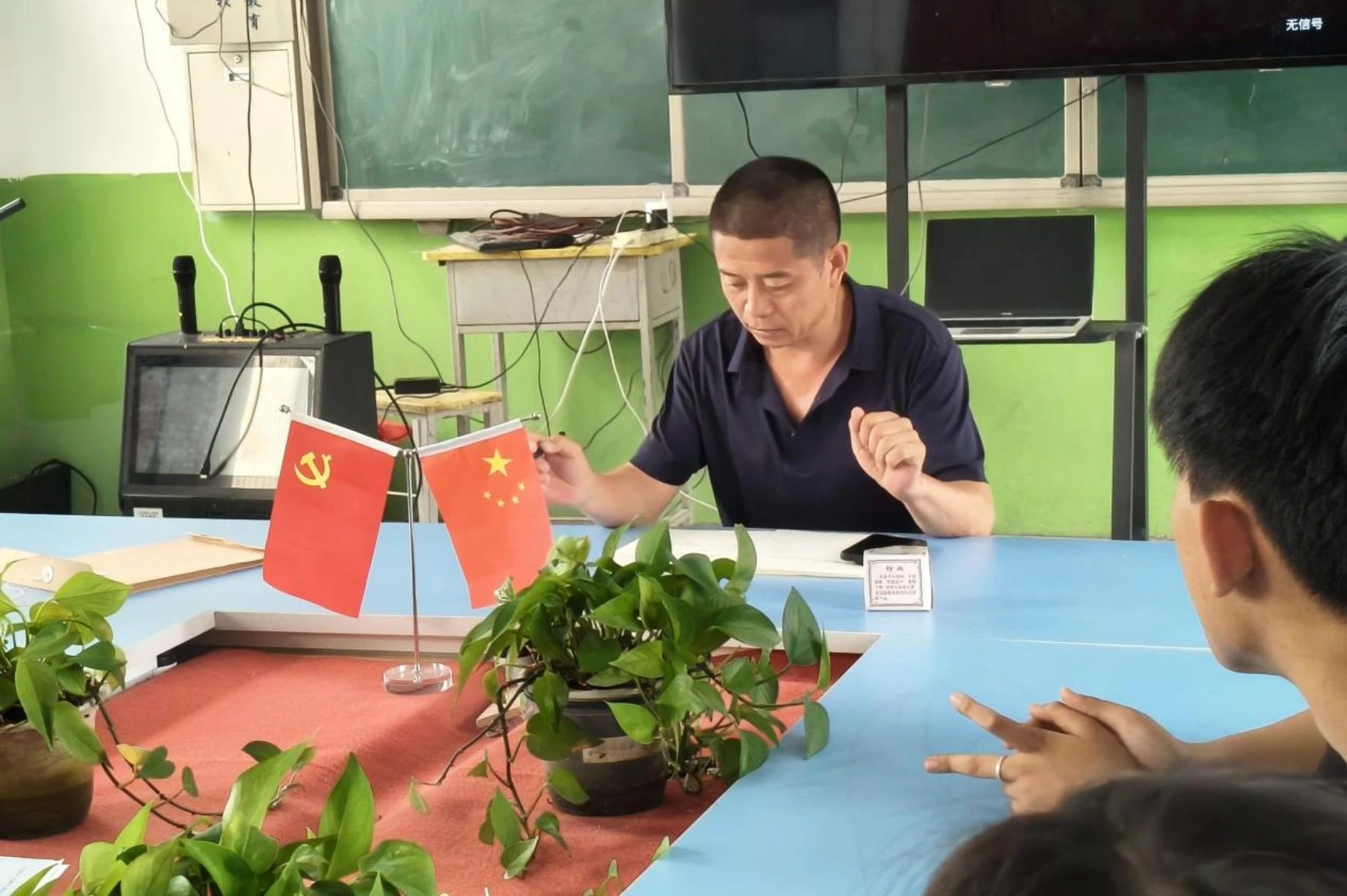 午后,志愿队还组织了意义深刻的思想交流活动。在布置简洁却不失庄重的教室里,摆放着党旗和国旗,校长正在与志愿者们交流互动。通过分享红色故事、传递爱国爱党情怀,在志愿者们心中种下了志愿的种子,激发他们努力学习建设家乡的志向。