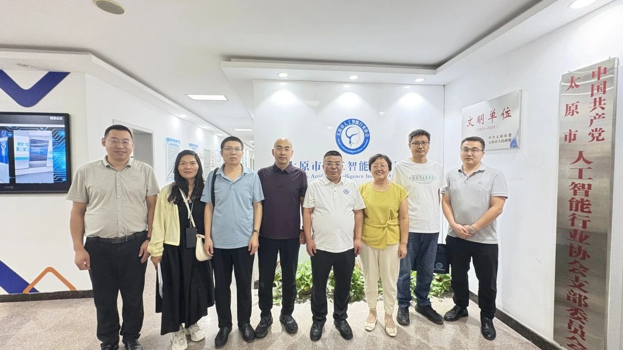 2025年8月14日,我系主任李香林、副书记李建东、副主任雷勇和微专业负责人许德芳一行来到太原市人工智能行业协会开展走访调研活动。太原市人工智能行业协会会长任晋刚、党支部书记张跃峰、副秘书长刘婷、副会长秦利军、理事王平热情接待,对我方的到来表示热烈欢迎。
