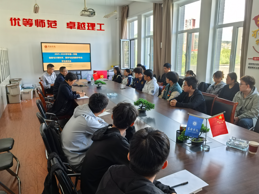 座谈会伊始,系副主任雷勇以 “找准方向,赋能成长” 为主题作开场发言。他首先结合当前高校毕业生就业形势与数学类专业发展趋势,明确此次座谈会聚焦 “就业方向选择”核心问题,精准对接大三学生现阶段的迫切需求。 ” 他鼓励学生代表们放下顾虑、畅所欲言,既要分享个人初步的未来规划与现阶段学习安排,更要大胆提出备考、就业中遇到的困惑,让系部能精准掌握学生需求,为后续制定针对性帮扶措施提供依据。